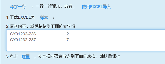 - 注意下面的一二三步。第一步下载样式表,第二步复制Excel的内容粘贴到文字框,第三步点击按钮,Excel的内容会被检查并加入到下面的表格中。