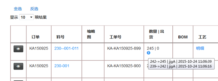 如上图,只有具有相关权限的用户才能看到某些页面。比如,订单和出货管理基本集中于“订单和出货”页面,排产也在“订单和出货”或者“仓库”里做。车间内部的事情基本在“生产计划”页面。维修,售后类事务则在“出货追溯”页面。