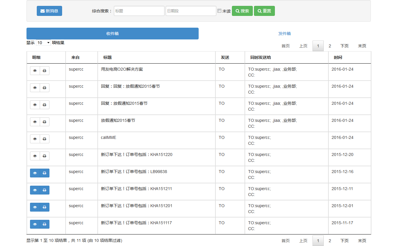 系统的内部通讯系统除了支持用户之间相互发送消息,还可以支持系统自动发送提示邮件到指定用户。详见系统的定时报表教程。