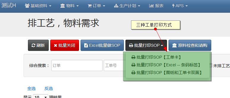 在工单打印之前,需要先排工艺,请见此章节。