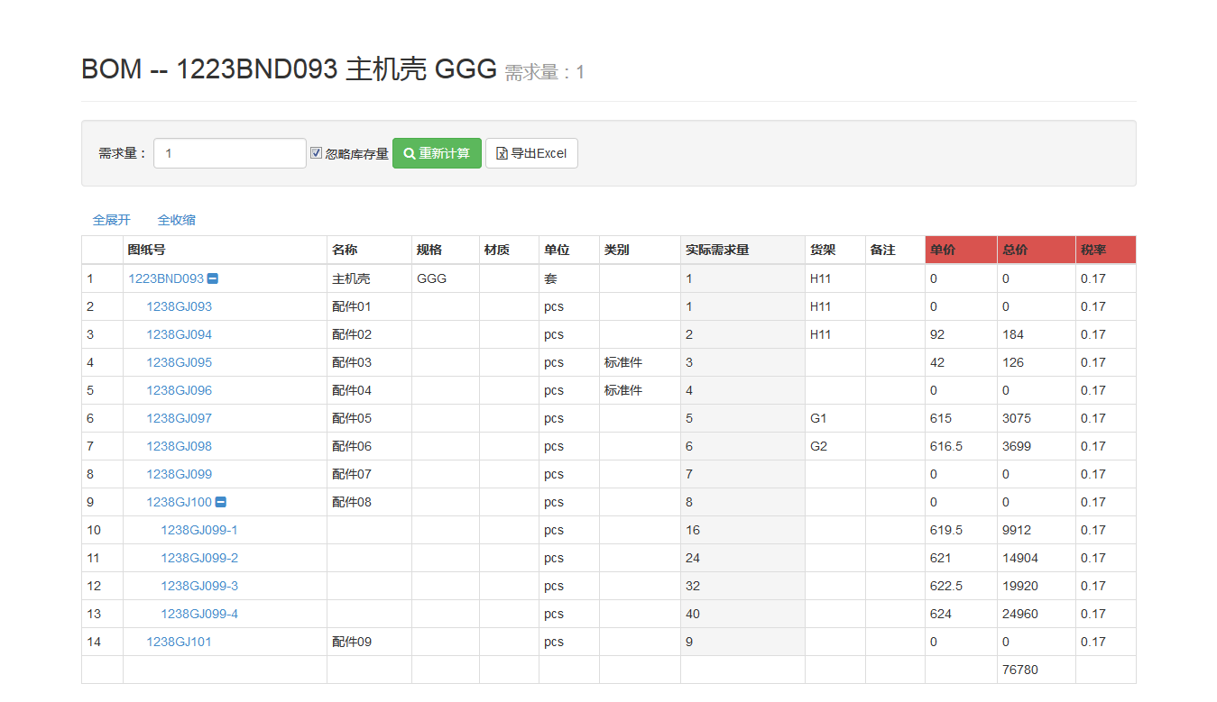 - BOM既包括了自制件,也包括了外购件。
