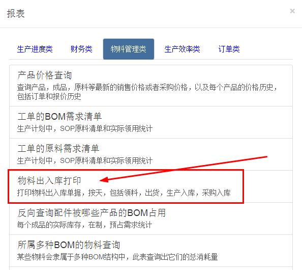 您的位置:首頁 > 培訓(xùn)教程 > ERP/MES軟件基礎(chǔ) 速易天工MES系統(tǒng)如何補打出入庫單據(jù) 來源:通商軟件2016-12-012016-11-28 ERP系統(tǒng) & MES 生產(chǎn)管理系統(tǒng) 10萬用戶實施案例,ERP 系統(tǒng)實現(xiàn)微信、銷售、庫存、生產(chǎn)、財務(wù)、人資、辦公等一體化管理 立即注冊免費體驗 在使用速易天工MES系统的时候,可能会遇到需要补打出入库单据的情况。这种情况怎么处理呢? 速易天工MES系统在开发的时候就考虑到这种情况,所以在报表里集成了这样的功能 首先,找到报表菜单,点击后找到物料管理类的物料出入库打印,如下图 点击物料出入库打印后会显示如下图的页面 选择时间段,出入库类别选择后,点击查询,会出现历史内容,勾选√需要打印的信息,最后点击“勾选下面的项目,生成可打印单据”,会跳出打印页面,直接在页面打印就完成了,如下图 在線疑問仍未解決?專業(yè)顧問為您一對一講解 24小時人工在線已服務(wù)6865位顧客5分鐘內(nèi)回復(fù) 馬上咨詢