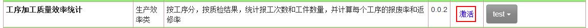 • 点击进入后,找到工序加工质量效率统计,点击激活,如下图