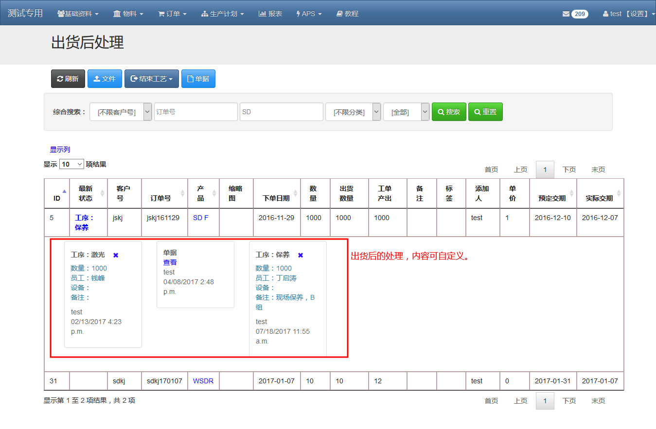 - 記錄出貨后的動(dòng)作,包括開單據(jù),現(xiàn)場(chǎng)安裝,保養(yǎng),維修等,內(nèi)容可自定義。