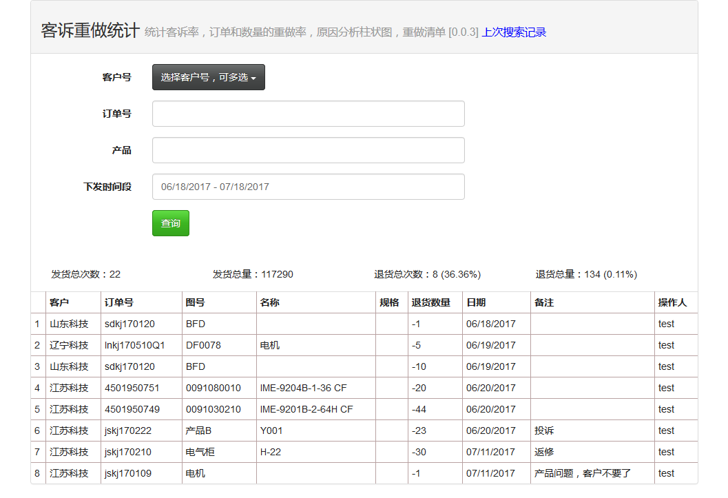 進(jìn)一步地,我們還可以根據(jù)客訴返貨情況做出統(tǒng)計(jì)。