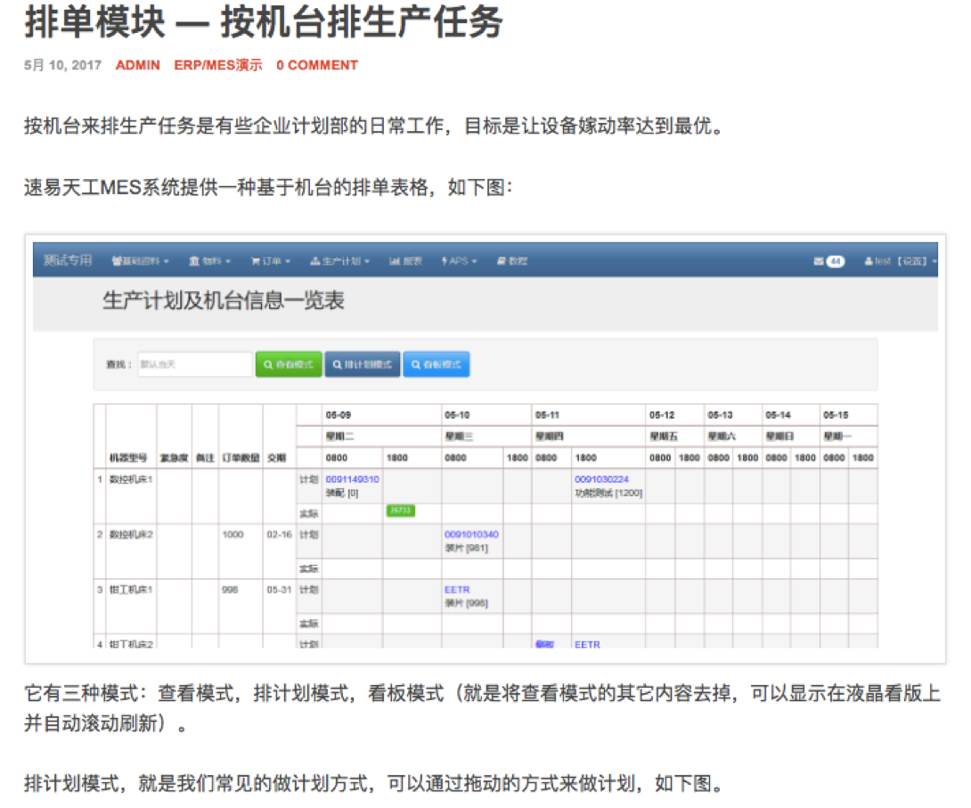 该公司提出的按机台排班及模具管理功能也是很多公司所需要的,现简单介绍如下: