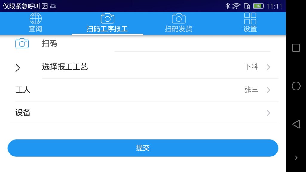 - 生產工序報工,包括工序的加工人,機臺,數量,質量等,通過二維碼掃碼方式。