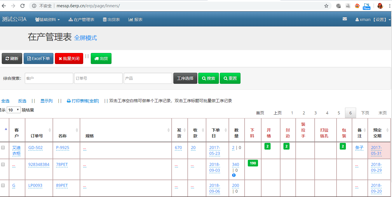- 主要的只有两个页面:在产管理表,和出货表。一个代表在产,另一个代表完成。