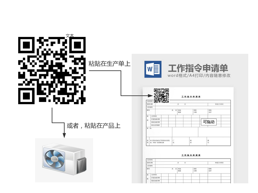 然后通過打印機打印出二維碼,貼在產品,或者生產指令單,或者出貨標簽上面