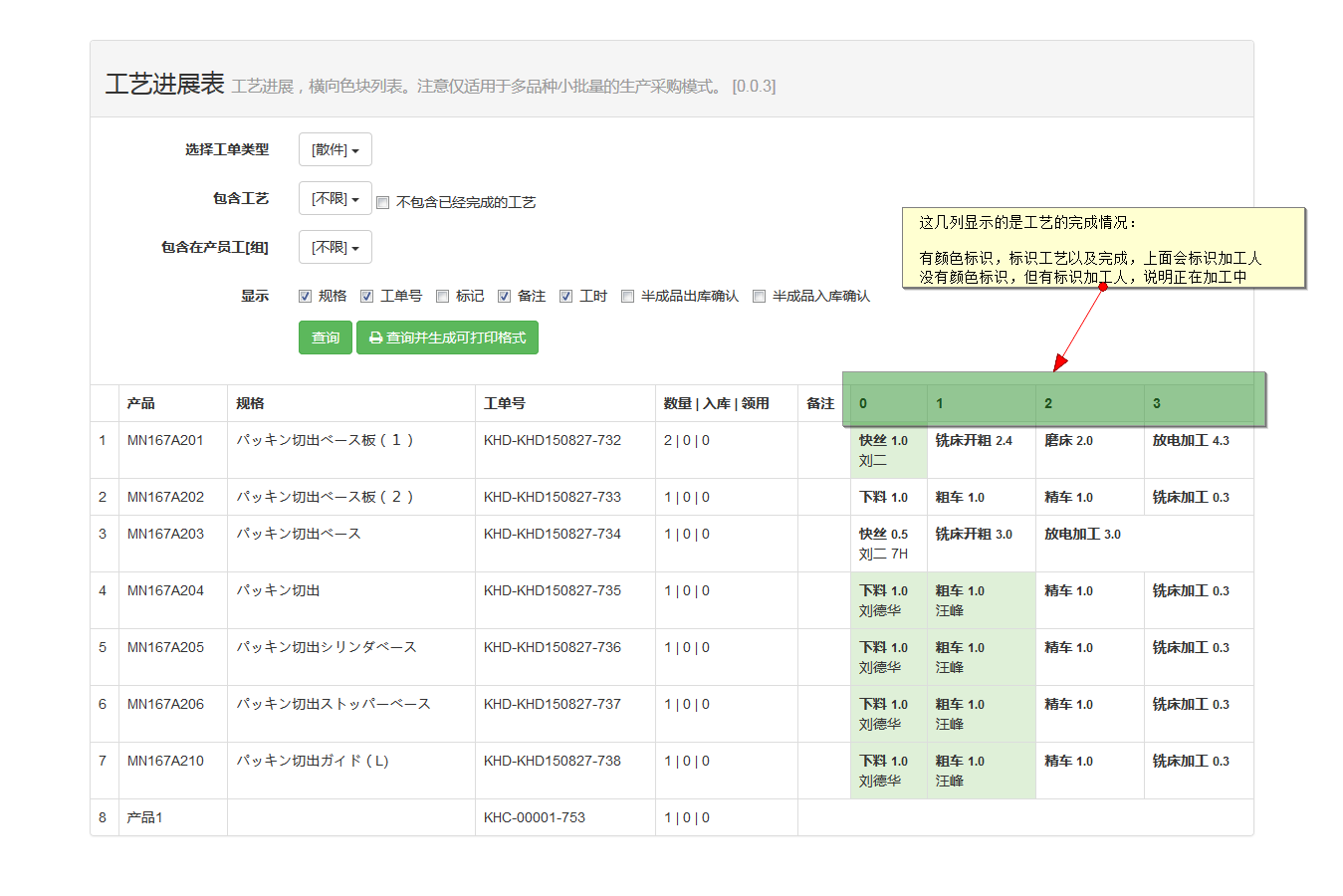 加工企业里光有进度还不行。进度一般给客户和业务看的。但实际过程中,企业更关注一些效率问题,和“疏漏”问题。效率就是员工生产效率,材料消耗,设备效率等等。“疏漏”问题包括漏排单,漏加工,过长加工时间,材料冗余等等问题。这些要靠广泛的报表统计。