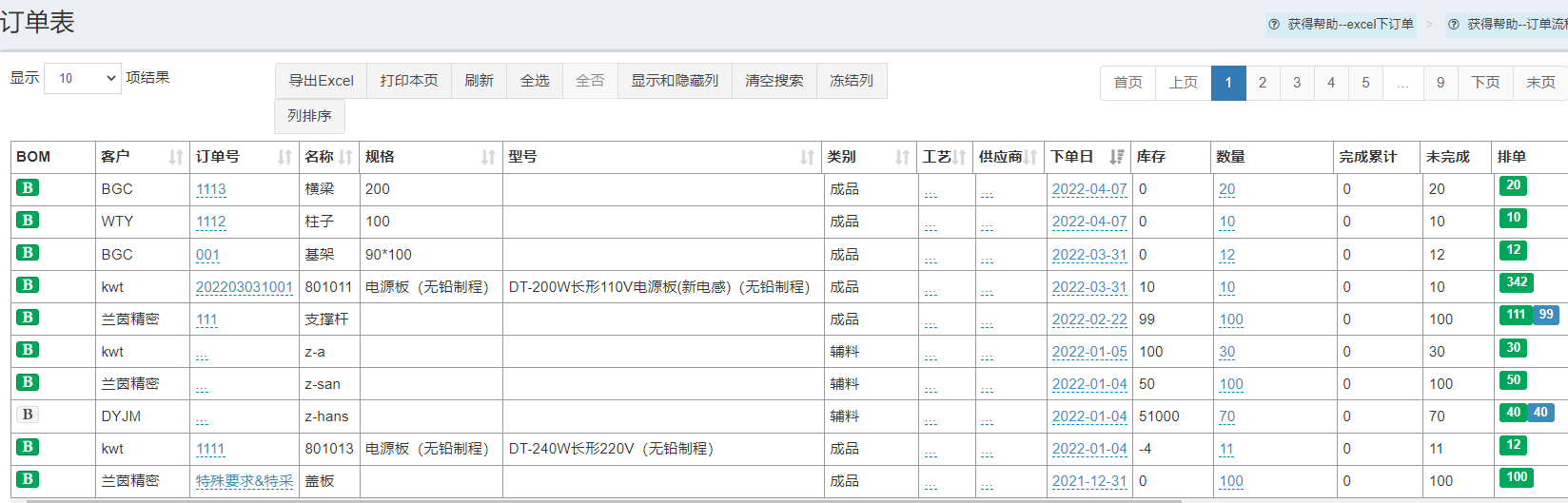 解决方案:引入速易天工V3生产管理系统,专人负责订单事宜,只要有客户给订单了,就到V3生产管理系统通过excel下单,将订单录入进系统,这样就可以保证不会再出现遗留订单的事情了。