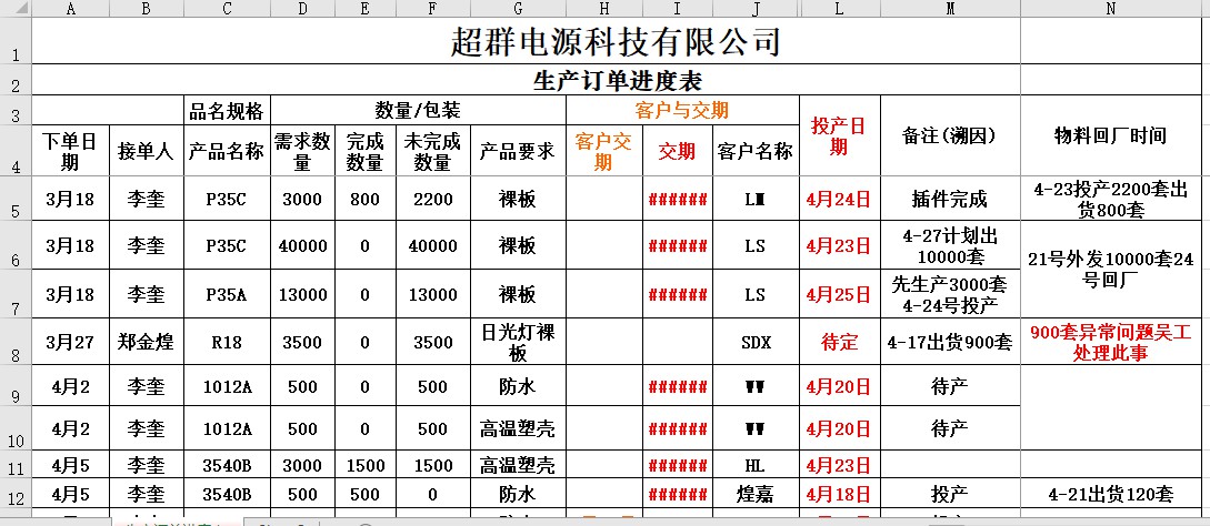 生產(chǎn)訂單進度表