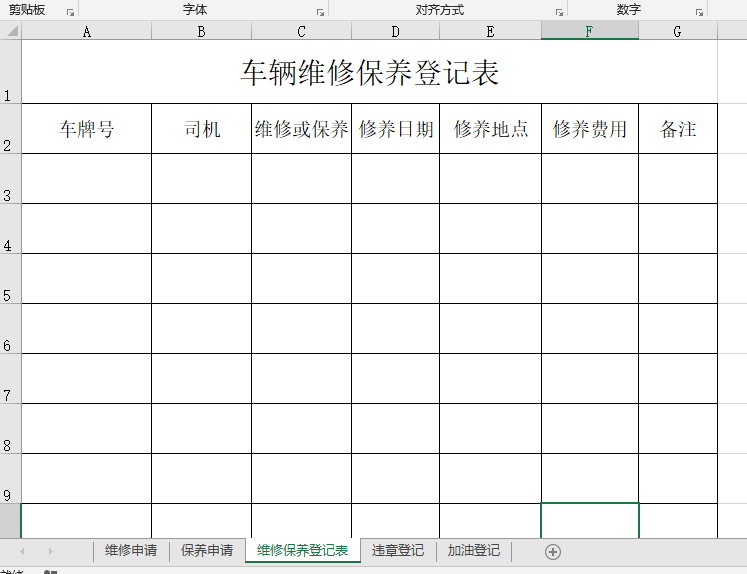 車輛維修、保養(yǎng)申請單和登記表、違章登記、加油登記