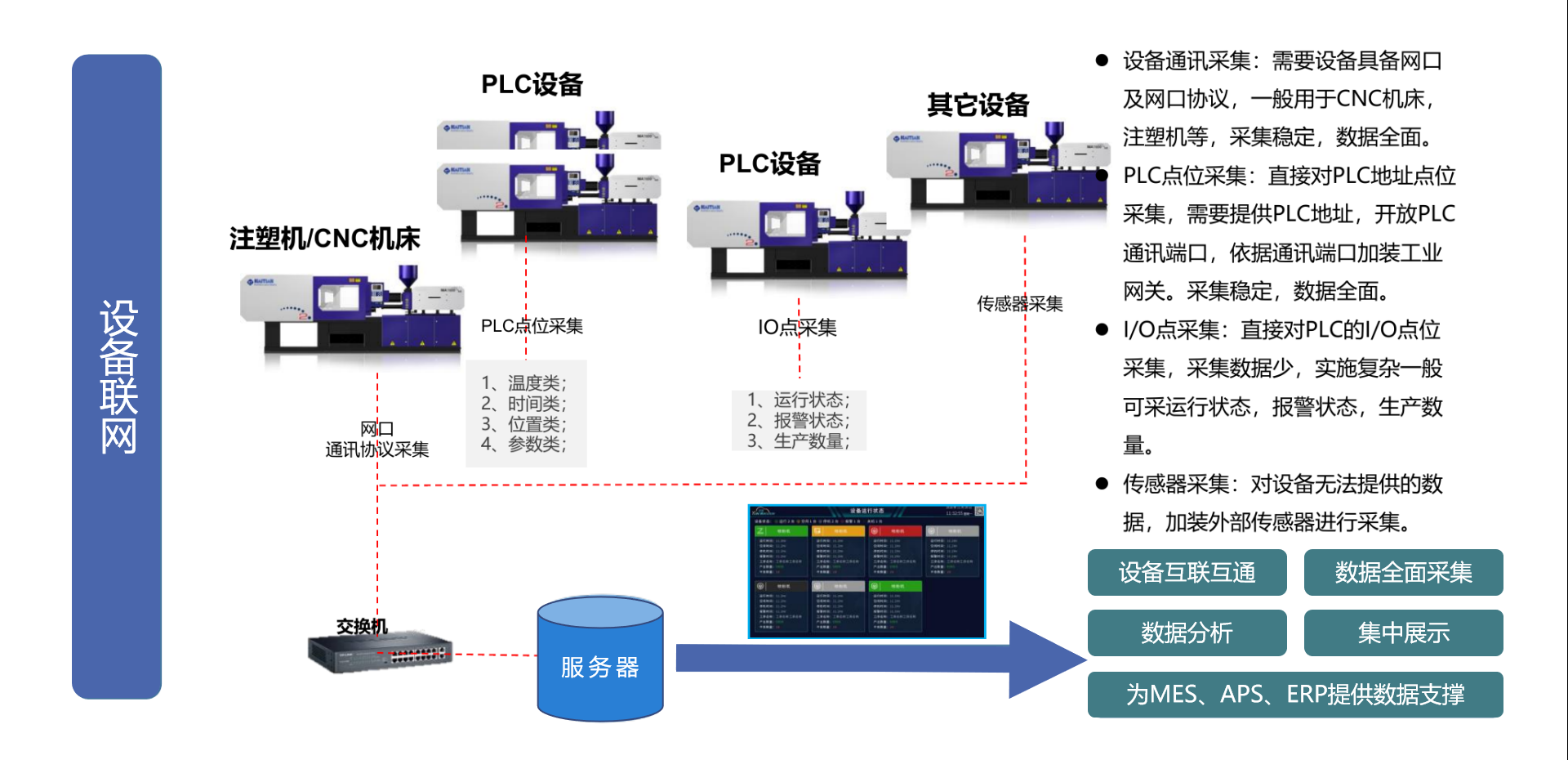 機床數據采集集成MES和ERP,實現工業數據的互聯互通,實現人機料的互聯互通