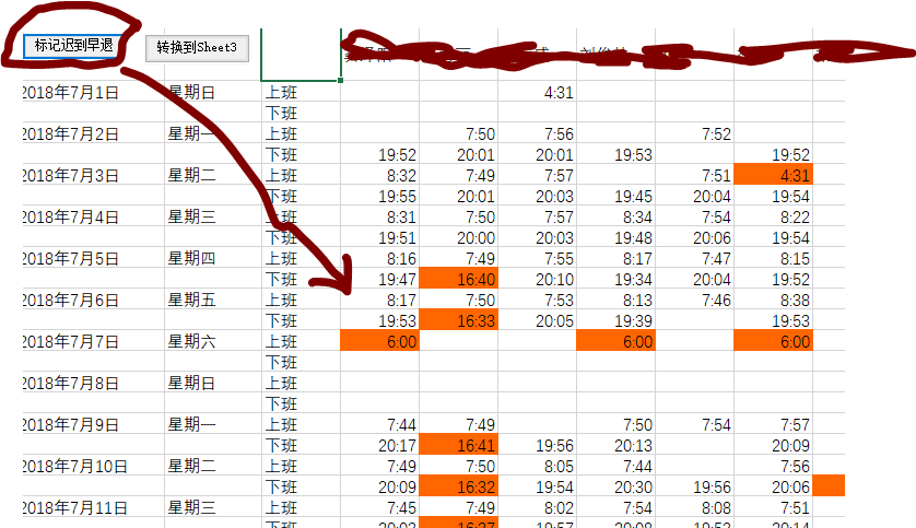 為啥要人工調整而不是自動化呢?因為考勤機的打卡數據有時候不能反應實際情況,必須人工干預一下,下面會說到。