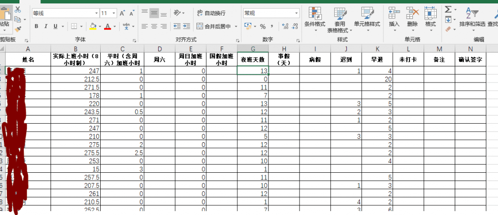 - 事假和病假:打卡數據是無法分辨事假和病假的,HR需要根據事假條和病假條來給表格打顏色。