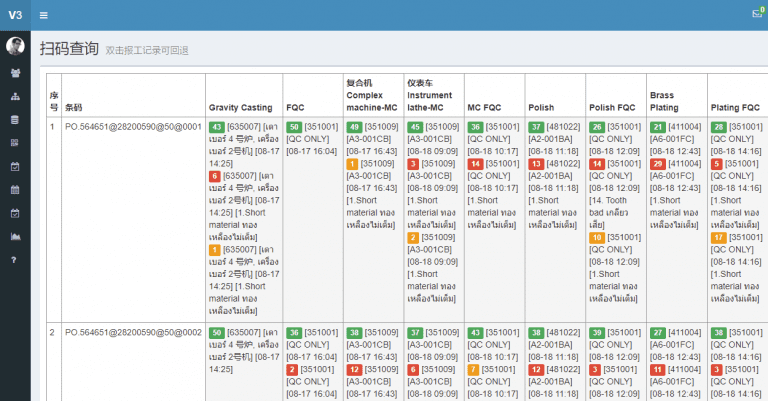 - 工序上的超時預警和顏色提示